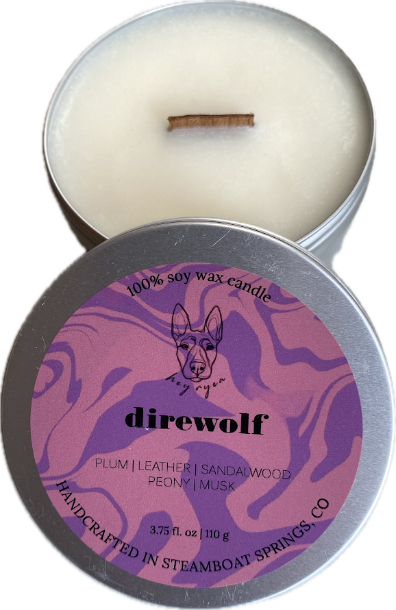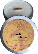 Travel Tins: 3.75oz, 100% soy wax, with wood wicks. Great for accompanying you on travel days.